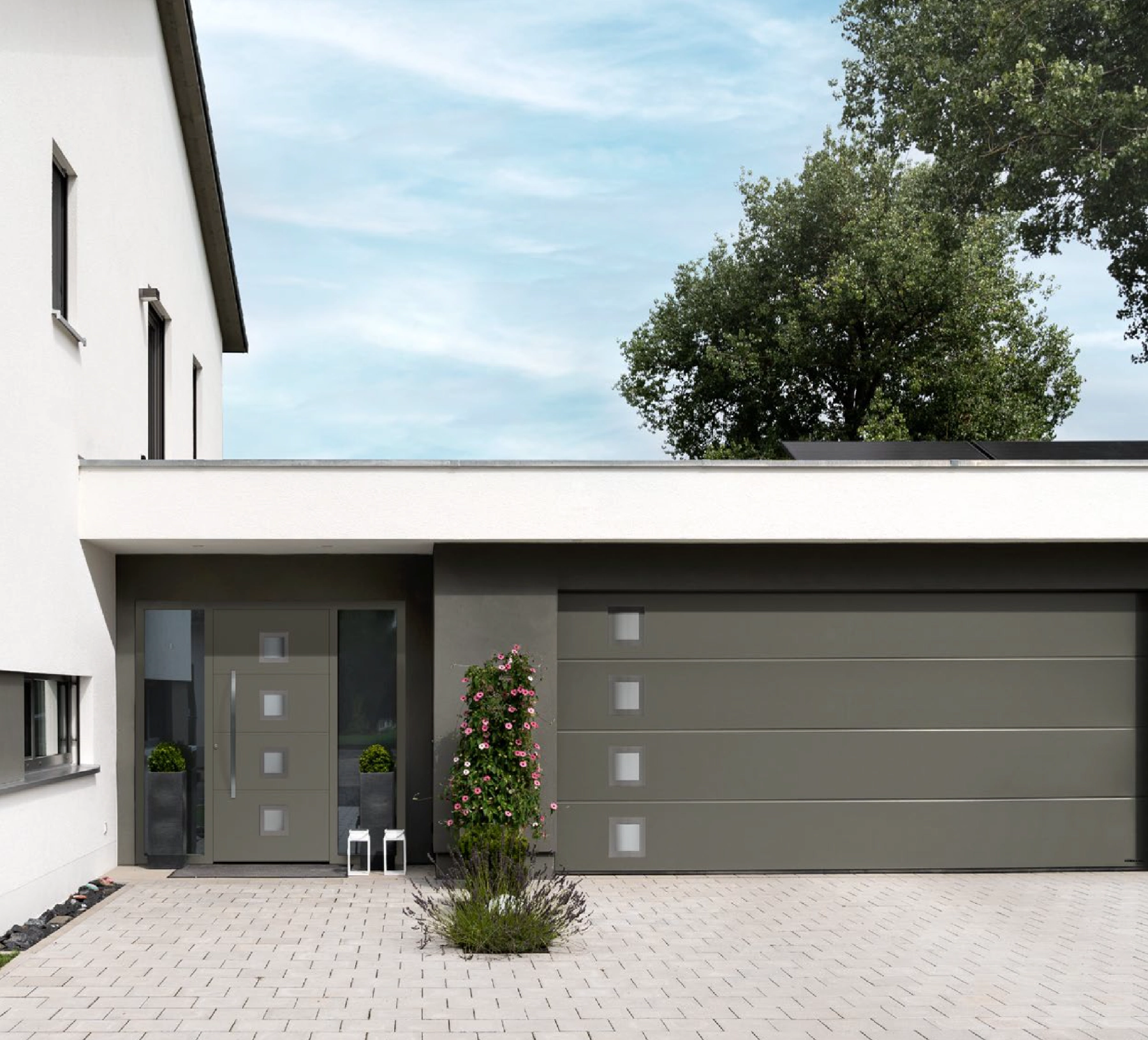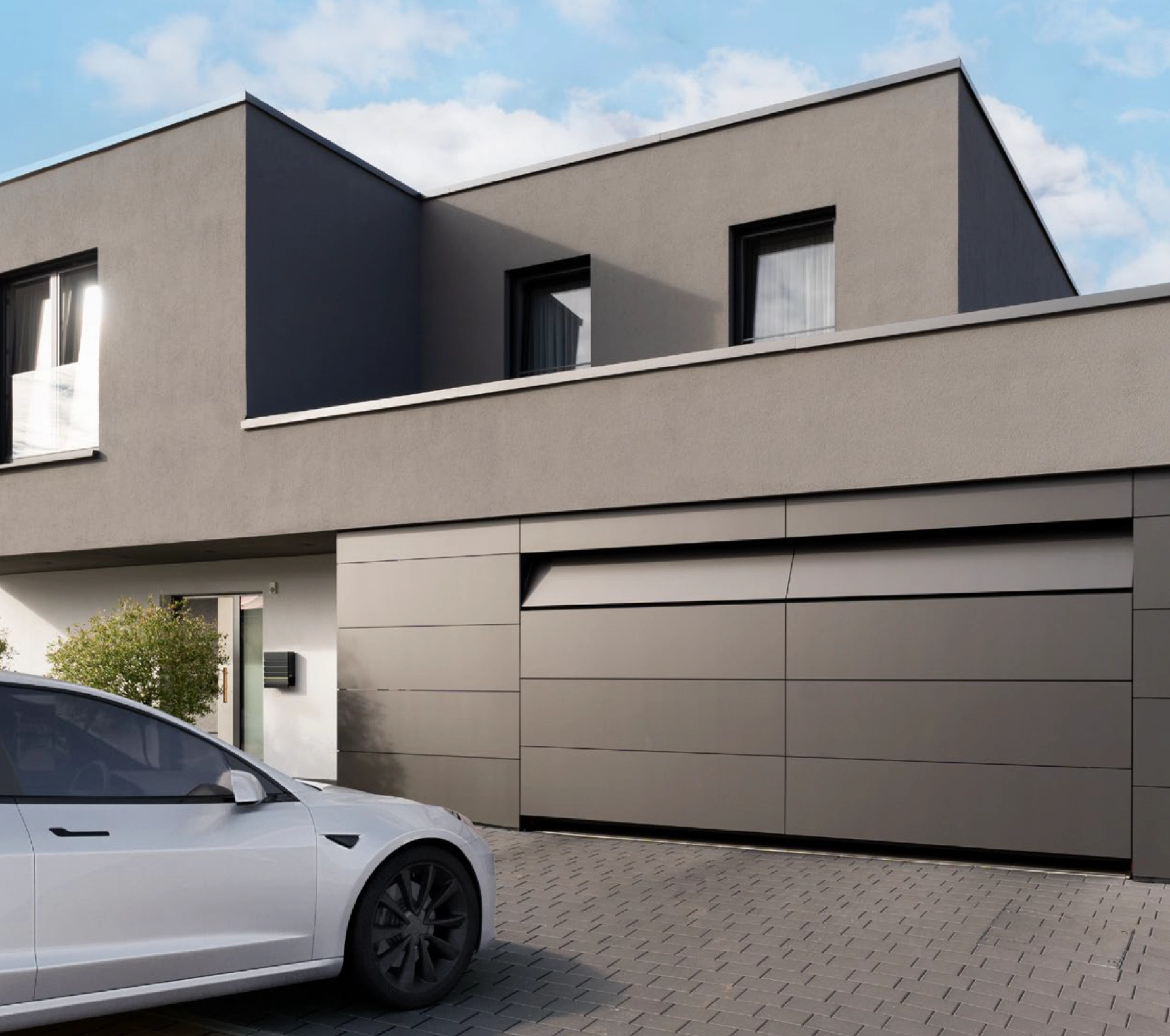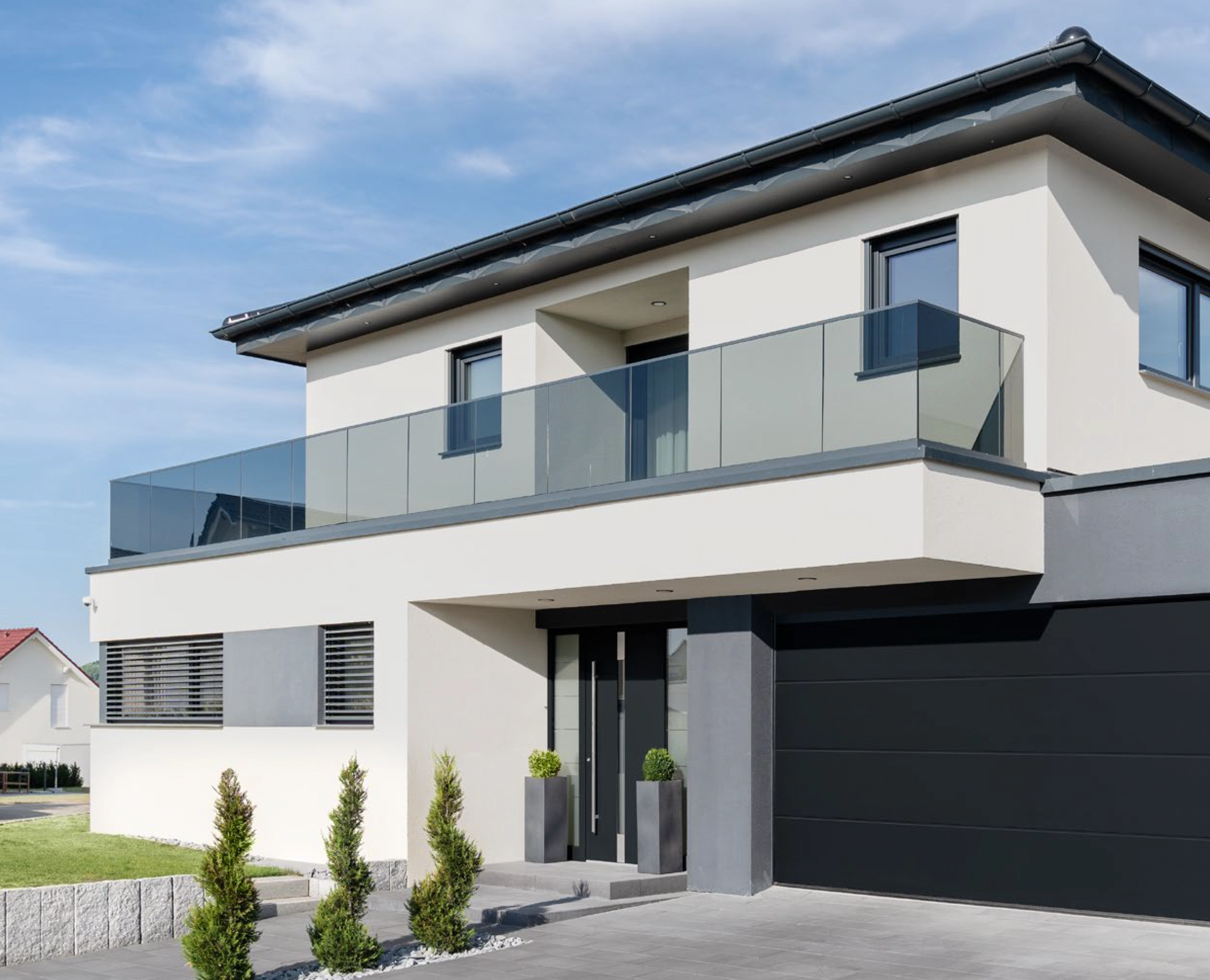 Für diese moderne Stadtvilla wurde eine zurückhaltende Lösung umgesetzt, die sich dezent in die Fassade einfügt. Besonders wichtig waren hier saubere Übergänge, exakte Spaltmaße und eine zuverlässige Funktion im täglichen Gebrauch.