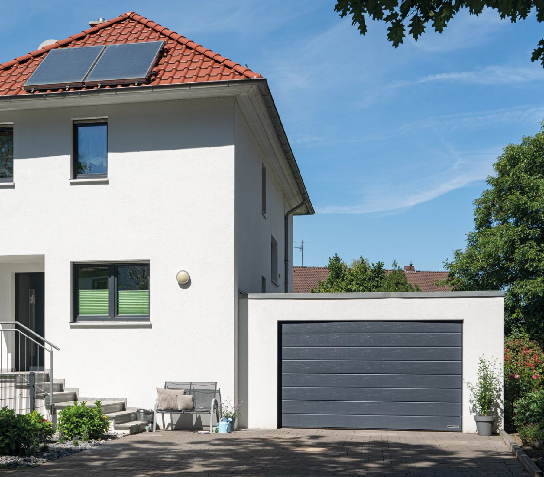 Ein modernes, dunkles Garagentor für eine klare Architektur – kombiniert mit Fokus auf Komfort im Alltag. Nach Montage und Einstellung wurde alles geprüft und die Bedienung verständlich erklärt, damit die Nutzung reibungslos läuft.
